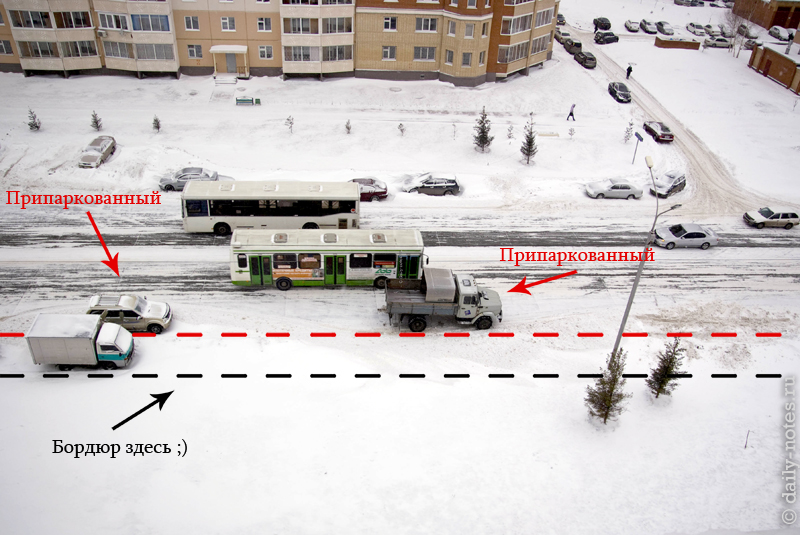 Выпал снег? Вдоль дороги сугробы? Некуда машину приткнуть? — Не беда, ставь во второй ряд!