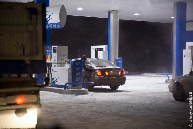 Прогрели немного машинку, подождали, пока рассосется пробка и поехали немного заправиться. В очередной раз разочаровались в Касмале — у них как всегда не оказалось 92-го. Да и сама заправка пустовала.