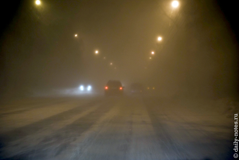 Пока катались по городу, погода менялась постоянно, но в основном на дороге мало что можно было разглядеть на расстоянии больше 10 метром от нас.