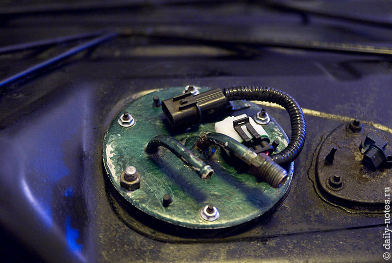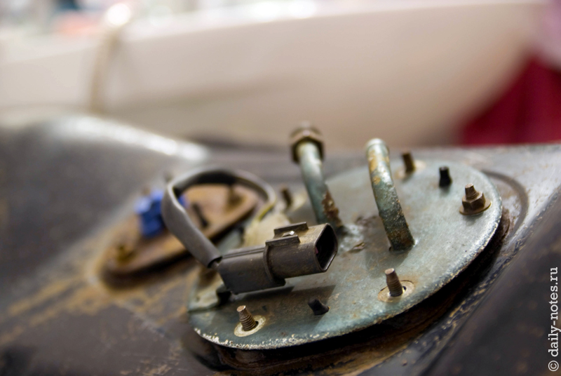 Параллельно занимался крышкой. Помог мне в этом деле АвтоВАЗ со своими запчастями для инжекторных жигулей. Разъем крышки бензонасоса — 150р., жгут проводов — 250р. Самое сложное было их найти в городе.