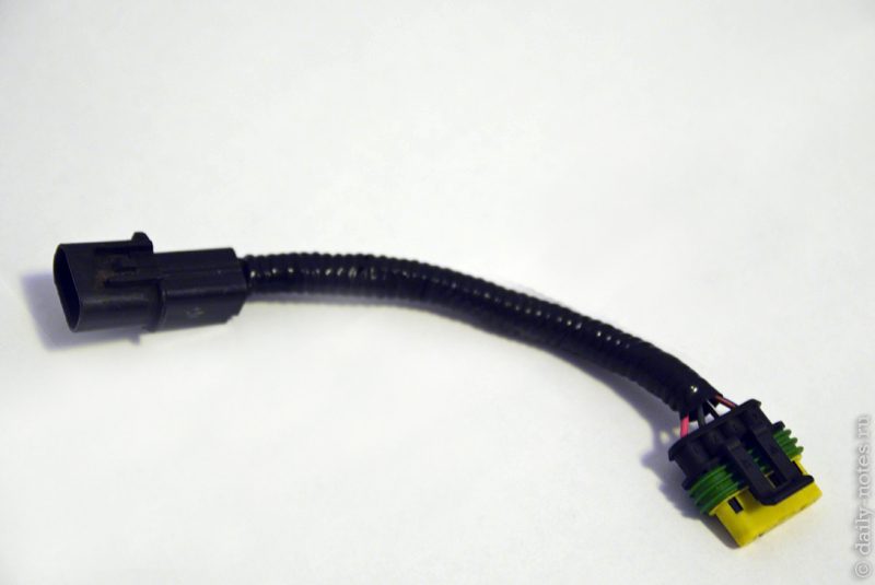 Далее из старого жгута и нового жигулевого собрал переходник, который в последствии был установлен на крышку. Провода соединял со сдвигом (на случай повреждения изоляции), пропаял, одел в термоусадку. Сверху одел броню и все замотал изолентой. Получилось так: