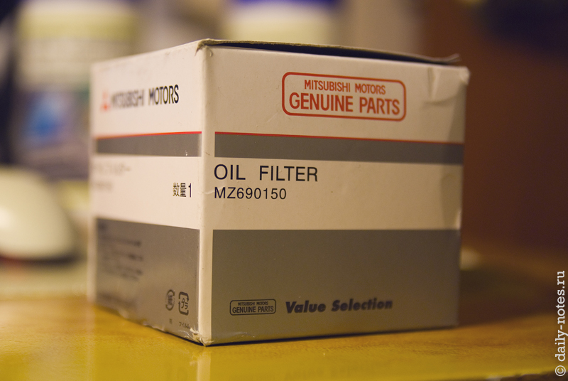 После совещания с опытными людьми пришел к выводу, что масло выдавило скорее всего из-под масляного фильтра. Обычно это выглядит как выдавливание уплотнительного кольца фильтра и в образовавшуюся щель все масло вытекает за пару секунд. Заказал на exist.ru оригинальный фильтр под номером MZ690150 — 330р. В прошлый раз заказывал оригинал под номером MD352626 за 500р., наивно предполагая, что если дороже, то скорее всего лучше. Позже на СТО оценили оба фильтра и дали заключение что MZ690150 лучше, т.к. резинка там более утоплена в фильтр и менее подвержена выдавливанию.