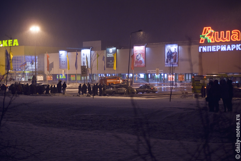 Недавно поеахли с Танькой в «IKEA» купить валиков для «чистки от котов» 😉 Приехали, а у «МЕГИ» пробка дичайшая, милиции 2 машины — думал авария какая, но оказалось все намного проще. Какой-то идиот сообщил через EMail, что в «Ашане» заложена бомба. Но идиот забыл уточнить в каком «Ашане» ибо в Новосибирске их 2 и эвакуировали оба. Постояли мы, посмотрели на все это, пощелкали…