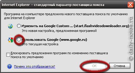 Это не страшно, просто выбираем свою поисковую систему и жмем «ОК».
