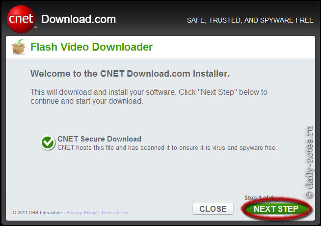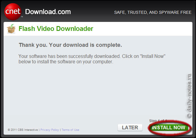 Далее CNet мастер скачает оригинальный установщик Flash Video Downloader и предложит его установить. Соглашаемся, нажимая на кнопку «Install Now».