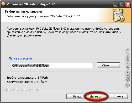 При необходимости можно выбрать папку установки расширения, но лучше оставить все как есть и нажать кнопку «Далее».