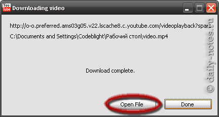 Далее пойдет прогресс сохранения видео. При необходимости его можно отменить кнопкой «Cancel». После сохранения видео с youtube вы увидите следующий диалог.