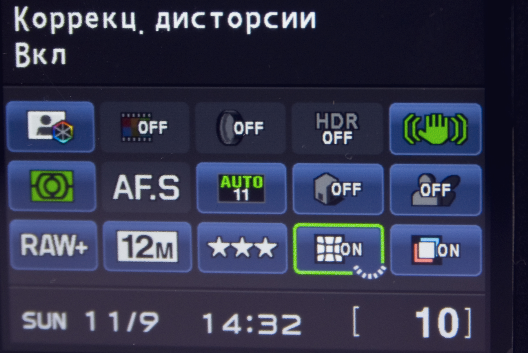 Копалась в меню фотоаппарата достаточно долго, потом плюнула на всё. Меню показалось мне абсолютно неудобным по сравнению с Canon, Nikon и Sony (в этих фотоаппаратах в меню можно разобраться за пару минут и тут же запомнить как всё выстроено — потому что всё логично, имхо).