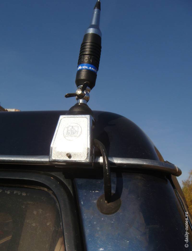 Обнаружил что машинка шумит в эфир, а так же шумит генератор по питанию. Попытки подключения напрямую к аккумулятору проблему никак не решало. Шумит совсем маленько, но слышно даже в соседних машинах 😉 — решил забить. Из минусов рации — машину под окнами не бросишь, т.к. антенна откручивается одним барашком, а стоит около 2х т.р.