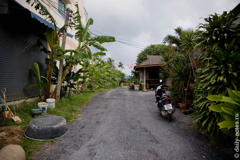 После того, как взяли байк, мы начали объезжать окрестности в поисках жилья. В январе-начале февраля, скажу я вам, в Таиланде ажиотаж 🙂 Хороших домиков по адекватной цене не найти — всё либо мегадорогое (ок. 6000 за ночь), либо совсем дешевые непривлекательные варианты.