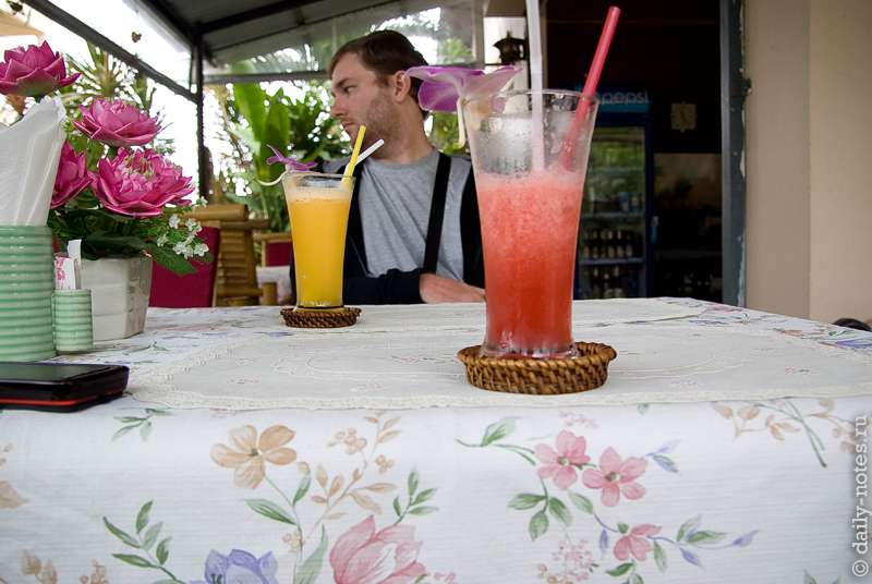 Утром первым делом мы решили отправиться к нашим друзьям, чтобы разузнать где поблизости можно снять домик, байк и купить продуктов.