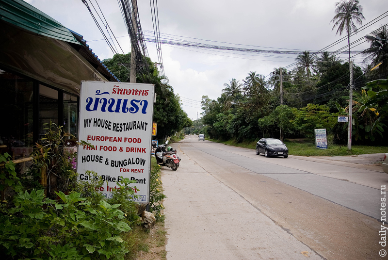 В итоге, за месяц пребывания на острове мы успели пожить районах Банг По, Бо Пут, и Натон. Больше всего нам понравилось на Банг По — мы там жили пару дней у дядечки-немца, который заведует рестораном «My House Restaurant» и заодно сдает бунгало и комнаты в аренду. Это было самое лучшее место, потому что домики находятся прямо у пляжа — одна минута и ты уже купаешься в море. Кроме того, этот район — достаточно тихое место, как мы и любим 🙂 Но был и минус — в домиках нету интернета, ваще никакого.
