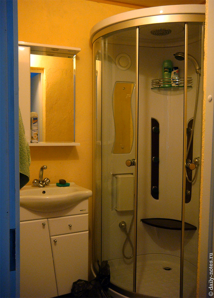 Также на кухне есть свой туалет с душевой кабиной.