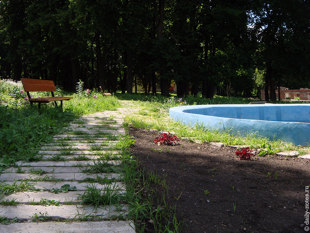 А немного ближе к центру, между корпусами, расположен неудавшийся бассейн: