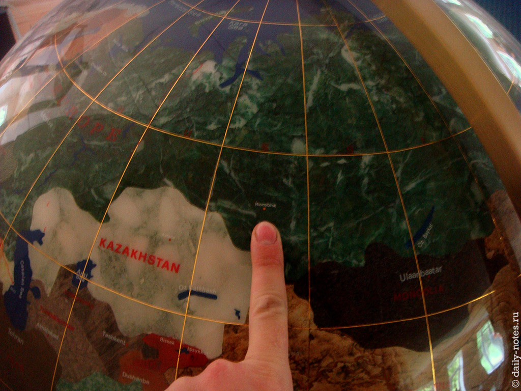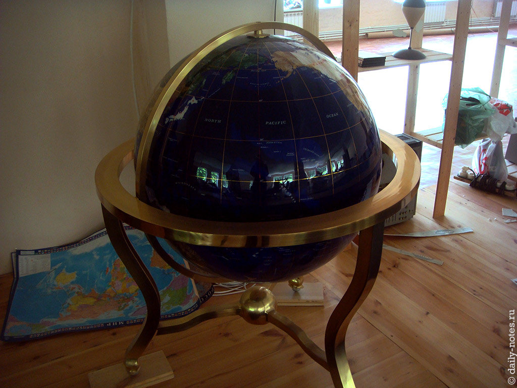 Еще есть вот такой глобус, страны на котором изображены из каких-то различных минералов. На территории России я нашел всего 3 города — Санкт-Петербург, Москву и Новосибирск.