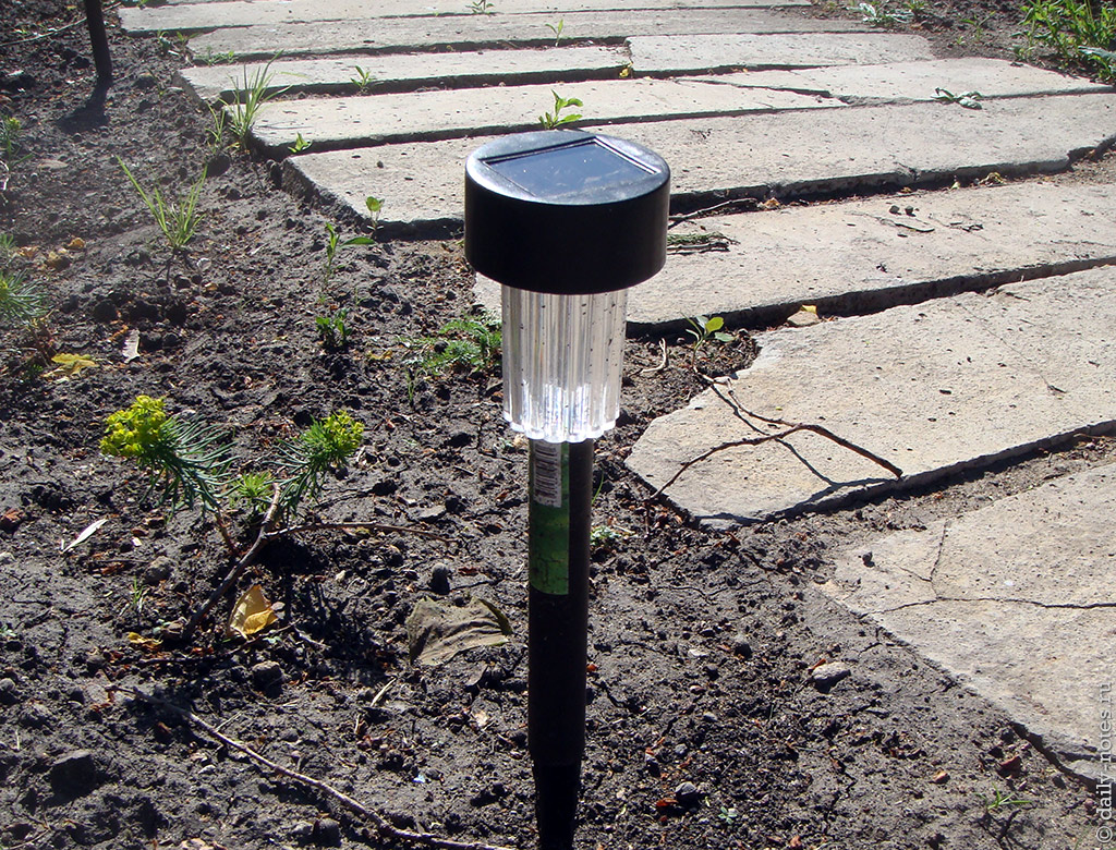 Лампочки круты тем, что работают от солнечных батарей: днем заряжаются, а ночью по ним можно определить где находится тропинка.