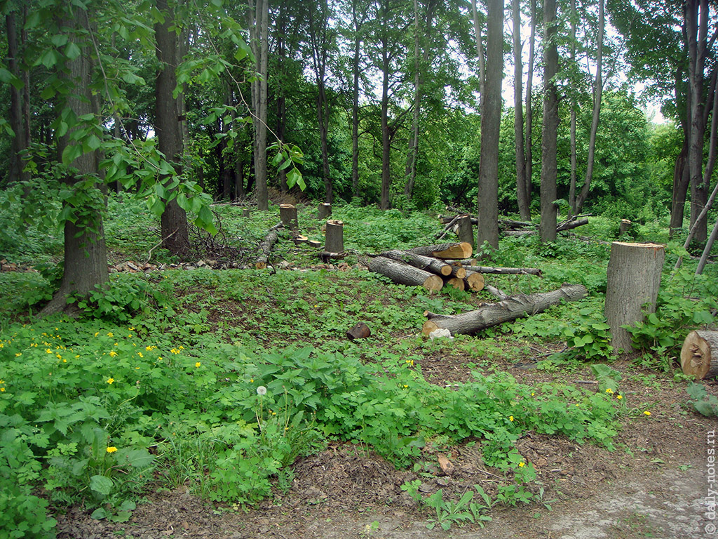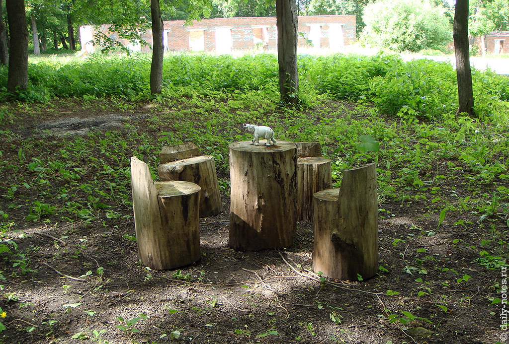 Немного поодаль — в сторону столовой — я нашел вот такие странные пеньки: