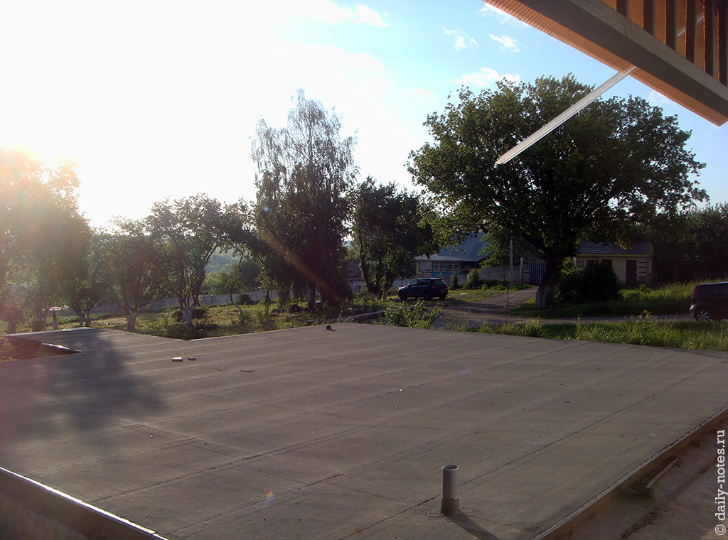 Первый он, по-видимому, потому что находится ближе всех к воротам. Первый дом будет представлять из себя 2-этажное жилище повышенной комфортности с террасой и балконами, в котором будут жить семьи программистов. В доме есть газовый котел, отопление и прочие прелести жизни. Осталось нормально подвести электричество, положить пол и немного отделать внутри.