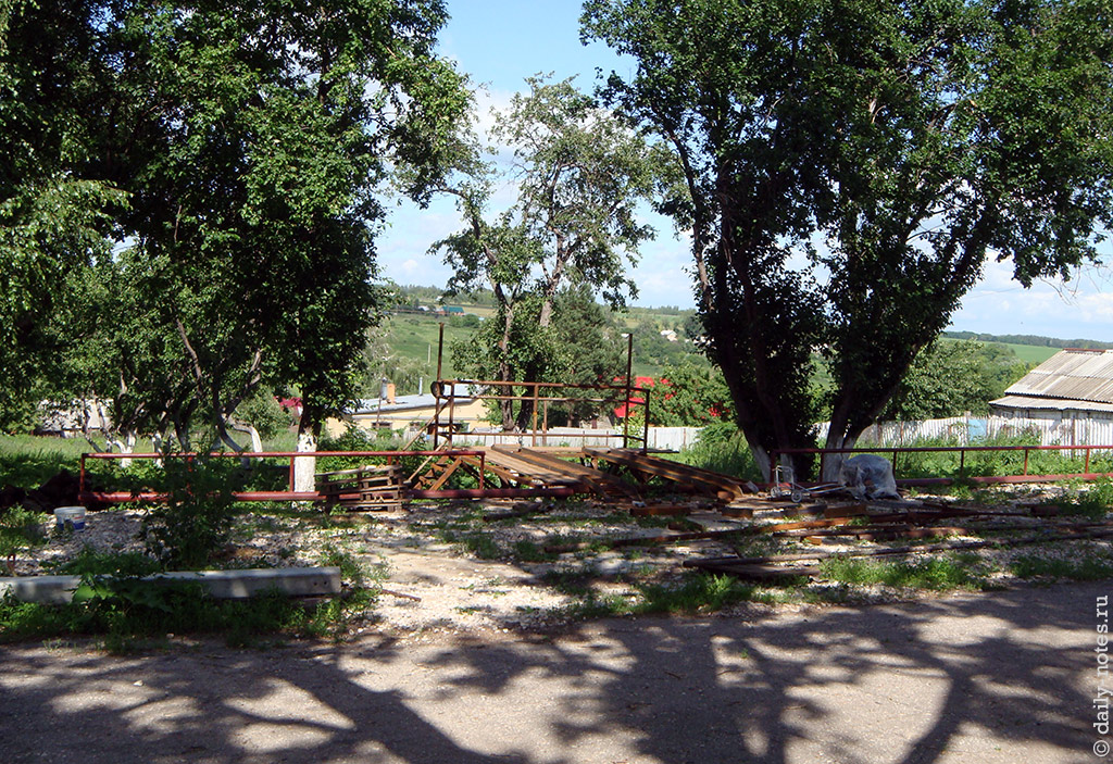 Больше тут смотреть особо не на что. Есть ещё здоровенный огород и прилегающие к нему заросли, есть аллейка между деревьями, есть ёмкость под водоём для уток (уток нет). Недостроенные корпусы не фотографировал. Наверное стоит немного показать сам Донской?