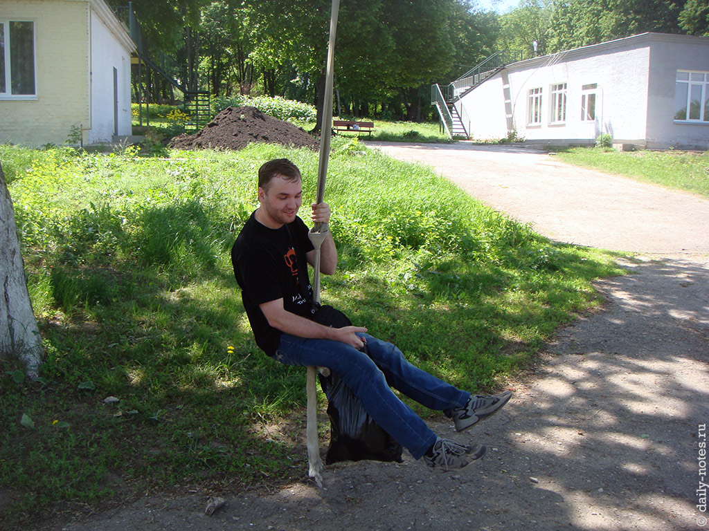 Рядом со спальным корпусом расположена тарзанка — единственное развлечение для взрослых детей. Я не брезгую.