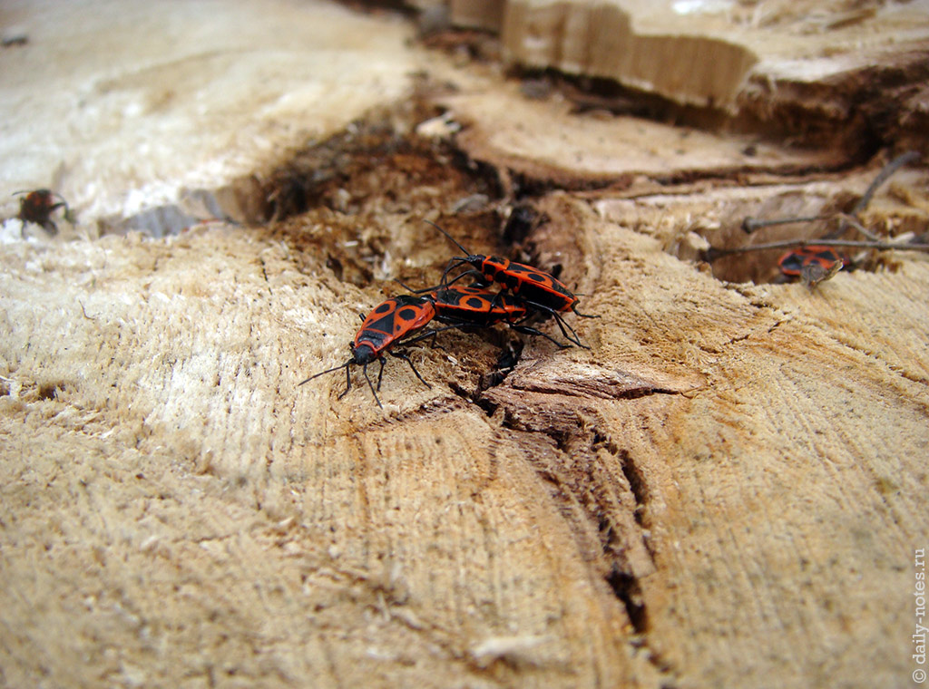 Клопы-солдатикиНа улице уже довольно много прибрали: скосили всю лишнюю траву, распилили упавшие деревья на чурки, свезли мусор в кучи (может даже когда-нибудь вывезут). Часть фоток старая, так что могут встречаться заросли и кучи мусора типа таких: