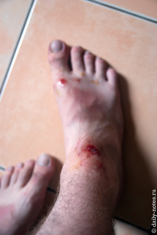 Через какое-то время нас «обрадовали» тем, что при таких открытых ранах лучше бы ставить уколы от столбняка. Тогда-то мы и решили, что пора обращаться к врачу, тем более, что отек с Вовиной ноги никак не хотел проходить.