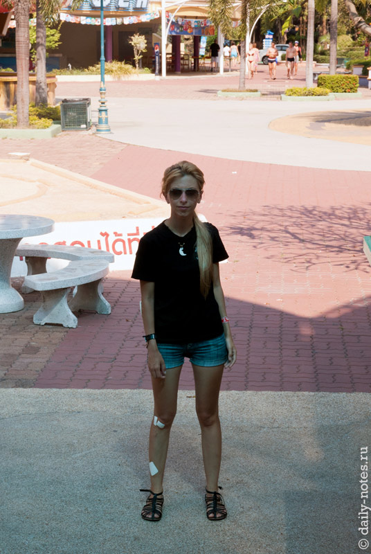 Мужчина-таец, который был за рулем автомобиля, быстро выбежал из машины и начал осматривать автомобиль 😉 Когда убедился, что всё цело, подбежал к нам и начал нам радостно это показывать и жестикулировать, но нам было не до этого, потому что второй человек из пикапа уже помогал нам подняться и параллельно успокаивал меня. Сказать, что мы были в шоке — ничего не сказать. Вован начал показывать водителю на мои «боевые» ранения и тут он очнулся и побежал за женщиной из соседней кафешки. Через 2 минуты они вместе уже помогали нам обрабатывать и заклеивать раны.