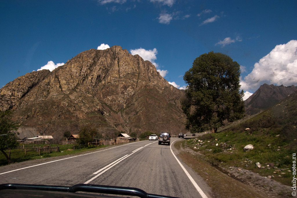 За Кош-Агачем хорошая дорога закончилась, и началась грунтово-щебенчато-каменистая. Сотовая связь тоже пропала.