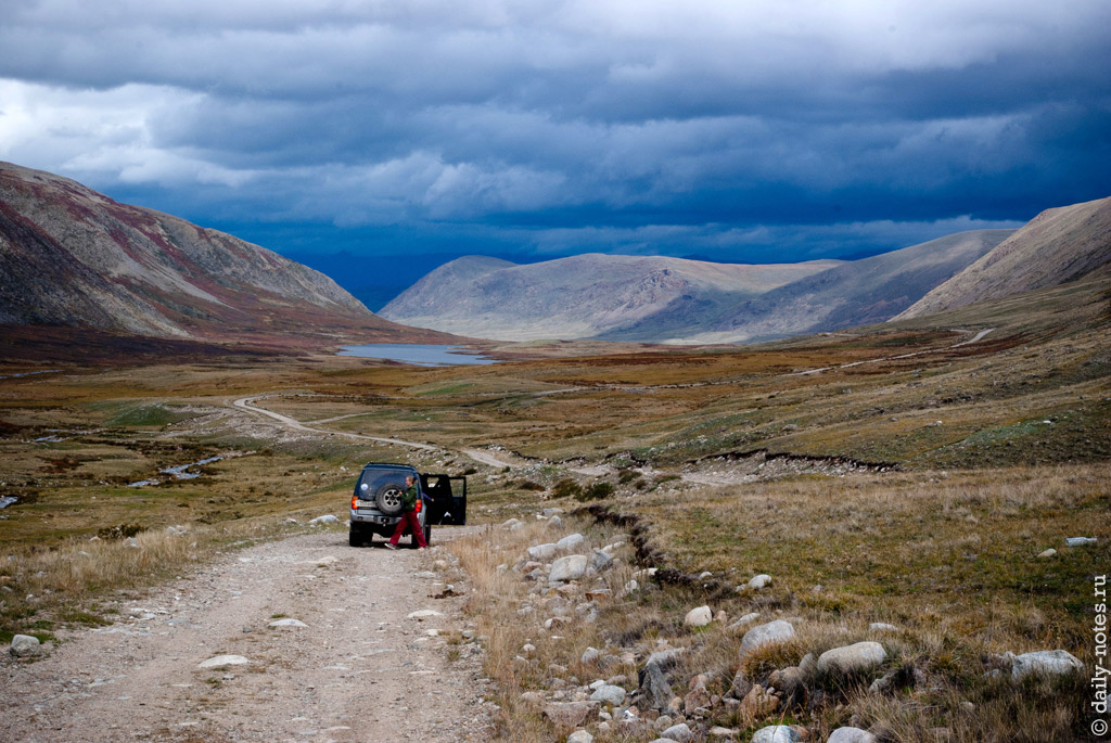Через некоторое время мы проехали погранзаставу и встретили возвращавшихся с Укока ребят. Они нас предупредили, что на горном перевале Теплый ключ есть место, где посреди дороги валяются два здоровенных камня размерами с машину — проехать можно, но как-то «очково» (это слово в полной мере описывает эмоции, которые мы испытали, проезжая их), потому что приходится подъезжать к самому обрыву.