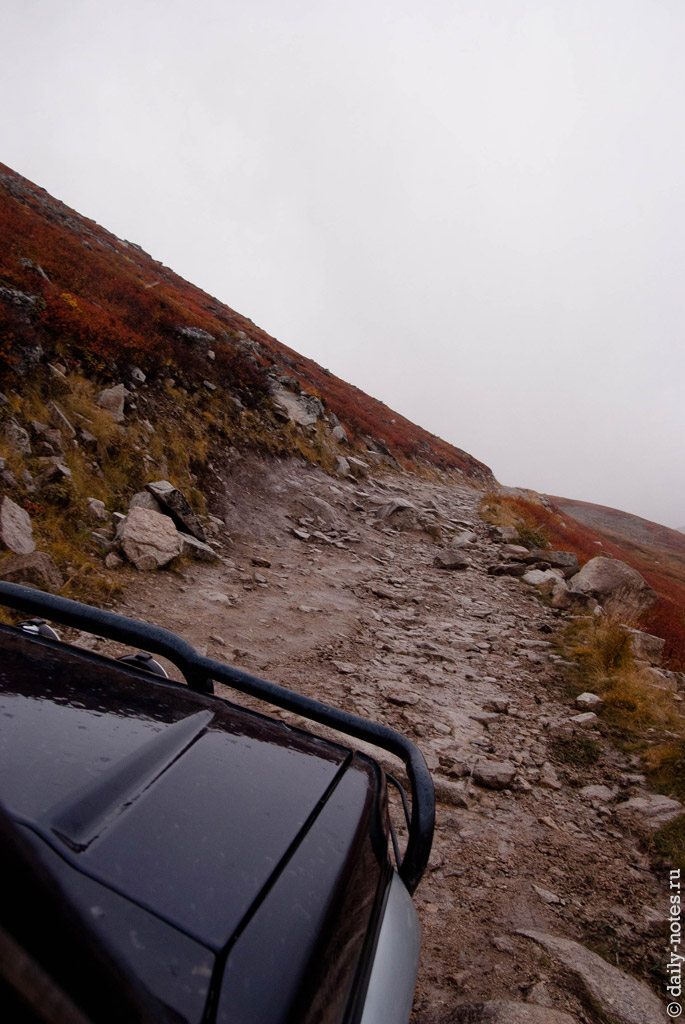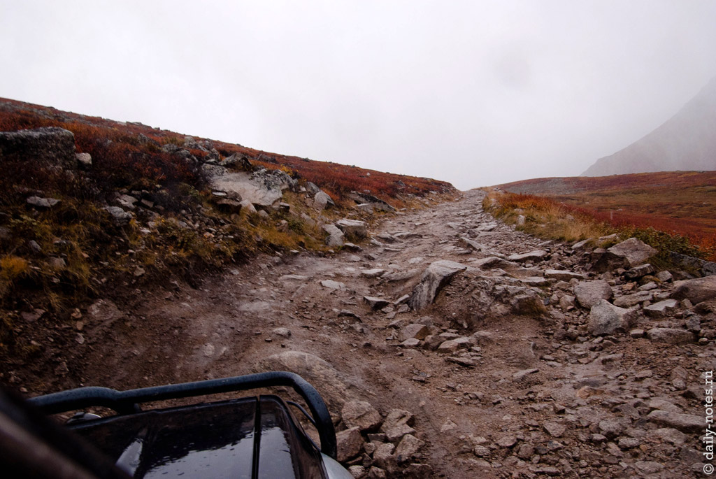 А вот и дорога, по которой мы пробирались через горный перевал Теплый ключ. 15 км за 3 или 4 часа, не считая остановки.