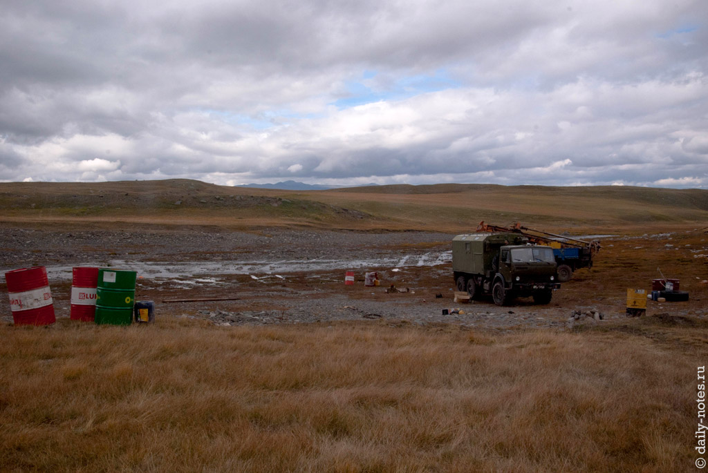 Двигаясь дальше, наткнулись на геологов, которые занимаются какими-то исследованиями, связанными с прокладыванием газопровода. «Покой» покоем, а газопровод по расписанию.