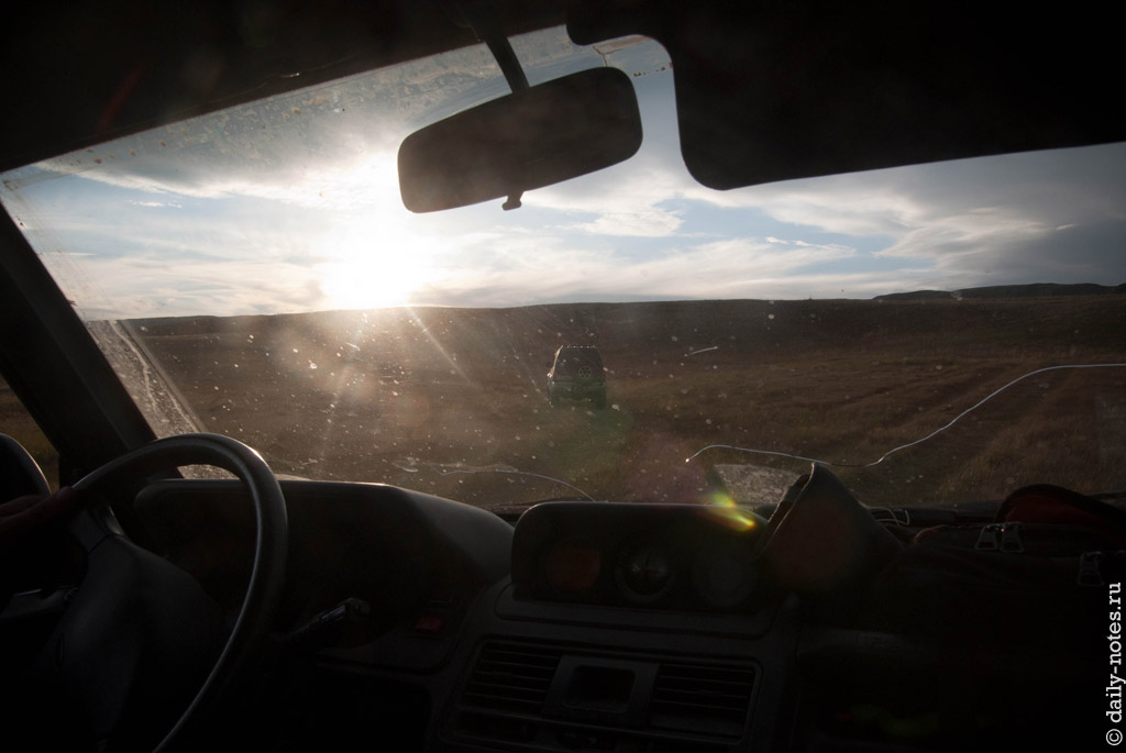 Кстати, с Алтая мы приехали с трещиной на лобовом стекле. Сначала она была совсем маленькой, а к концу поездки значительно разрослась.