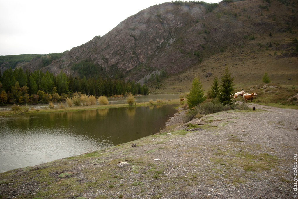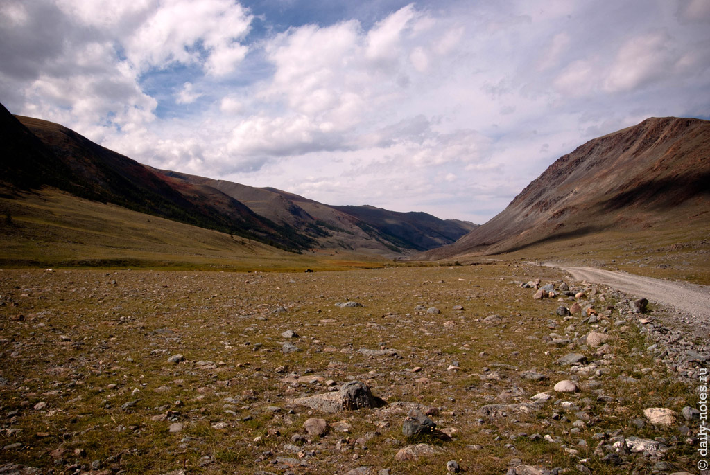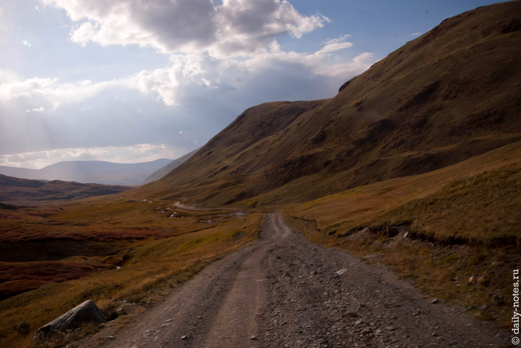 За Кош-Агачем хорошая дорога закончилась, и началась грунтово-щебенчато-каменистая. Сотовая связь тоже пропала.