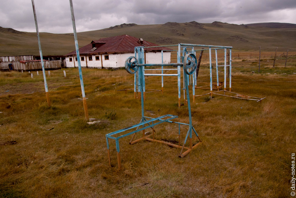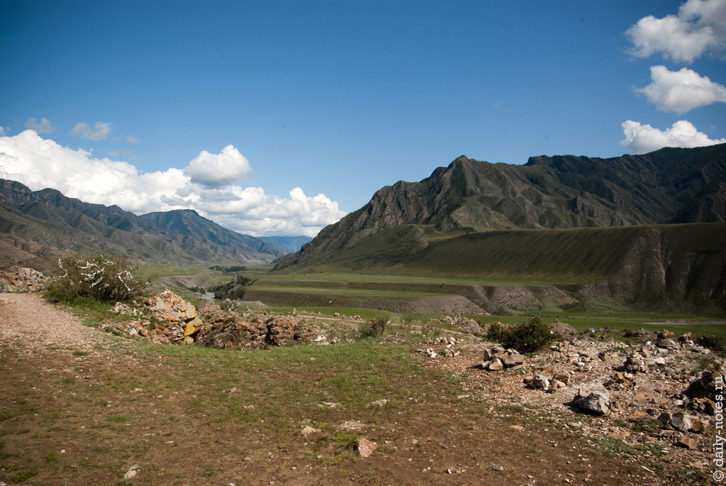 Очень долго катались и спорили, где нам остановится, но в конце концов свернули с трассы, заехали в какой-то поселок недалеко от Кош-Агача, проехали его насквозь и остановились там.