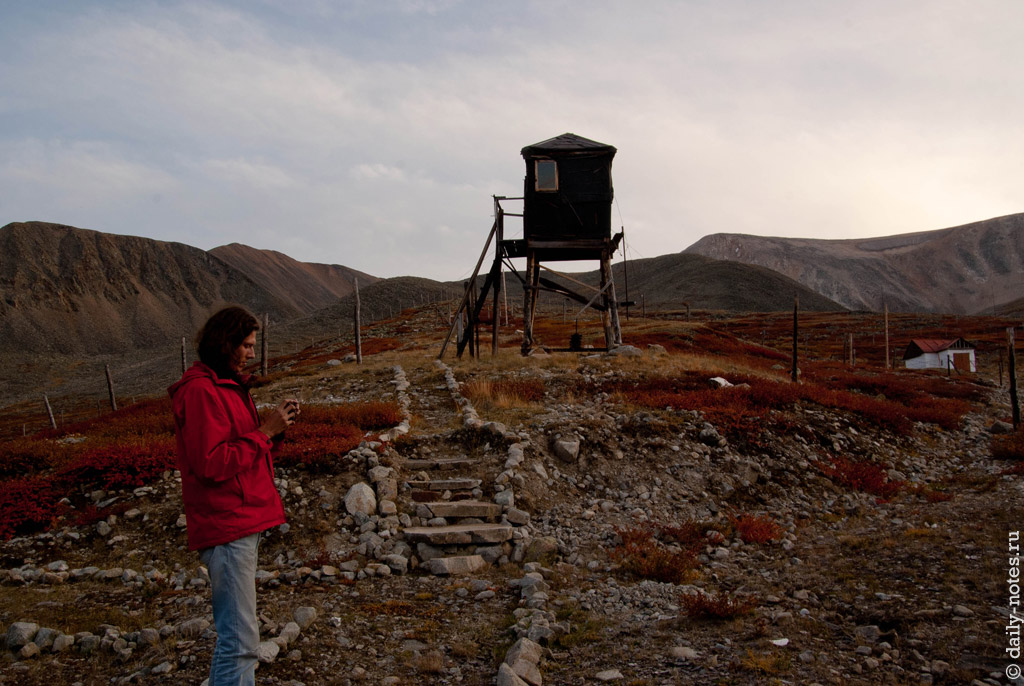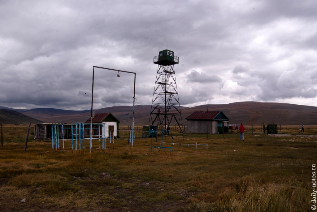 Подъехали к действующей погранзаставе — Челябинской казачьей (или Алахинской), чтобы проехать к озеру Укок. Здесь у нас проверили документы и мы поехали в сторону озера.