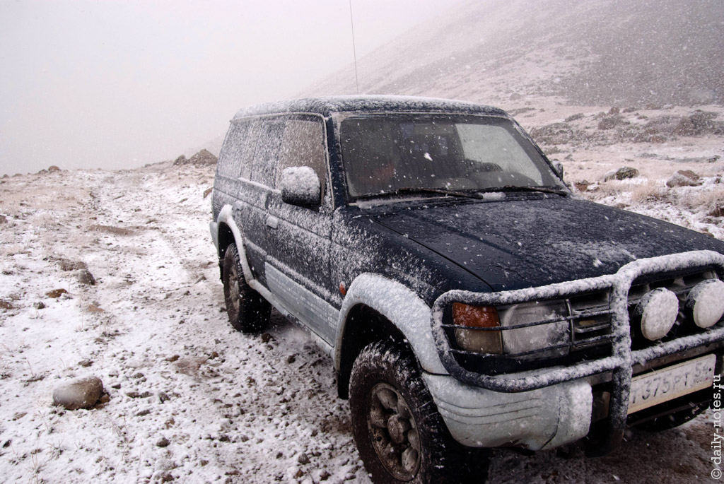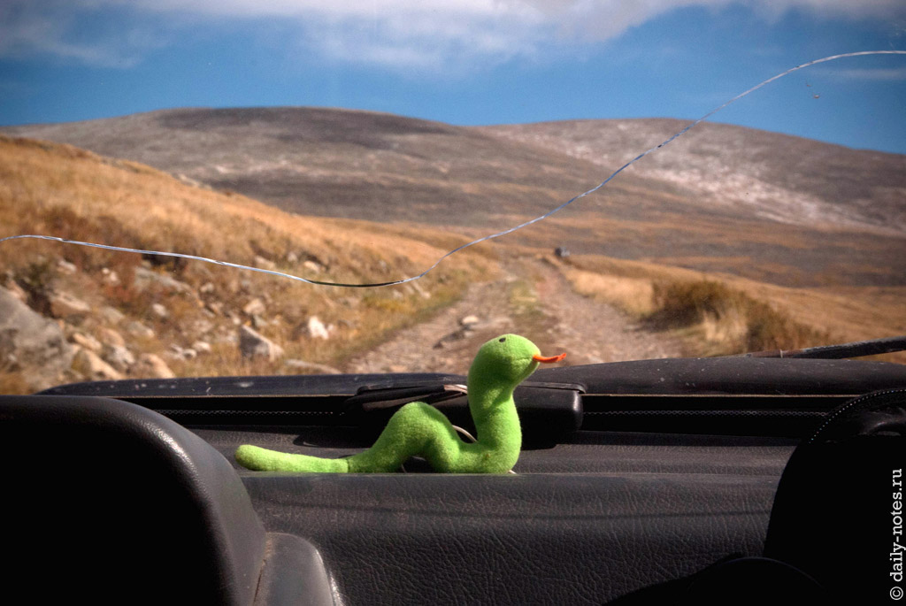 Эти же ребята сказали, что в Джазаторе сейчас много воды, и что вброд на машине его будет очень сложно переплыть, если вообще возможно. Поэтому ответственные за прокладывание нашего маршрута утвердились в своем желании ехать через перевал Теплый ключ.