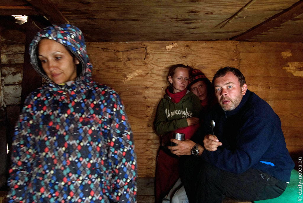 На стоянку мы приехали затемно и там уже кто-то был. Поговорив с людьми у костра, Саша предложил остановиться здесь же, только чуть отъехав от чужого лагеря, чтобы никому не мешать.