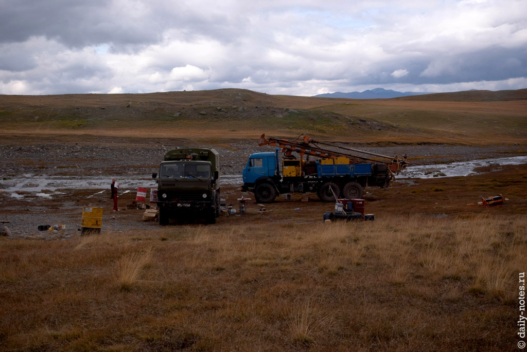 Двигаясь дальше, наткнулись на геологов, которые занимаются какими-то исследованиями, связанными с прокладыванием газопровода. «Покой» покоем, а газопровод по расписанию.