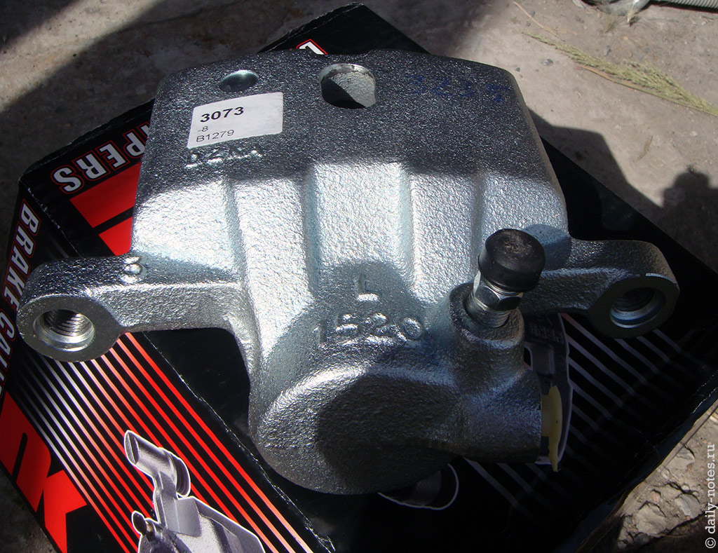 Были варианты и за 3000р, но в любом случае их пришлось бы перебирать. И тут я вспомнил про детали «восстановленные в условиях производства» которые так любит продавать exist.ru — от 4000р. можно купить вполне прилично выглядящие восстановленные оригинальные суппорта (можно и дешевле, но ждать дольше). Заказал суппорт NK 213073 и колодки Kashiyama D6054M и через 3 дня мне их привезли.