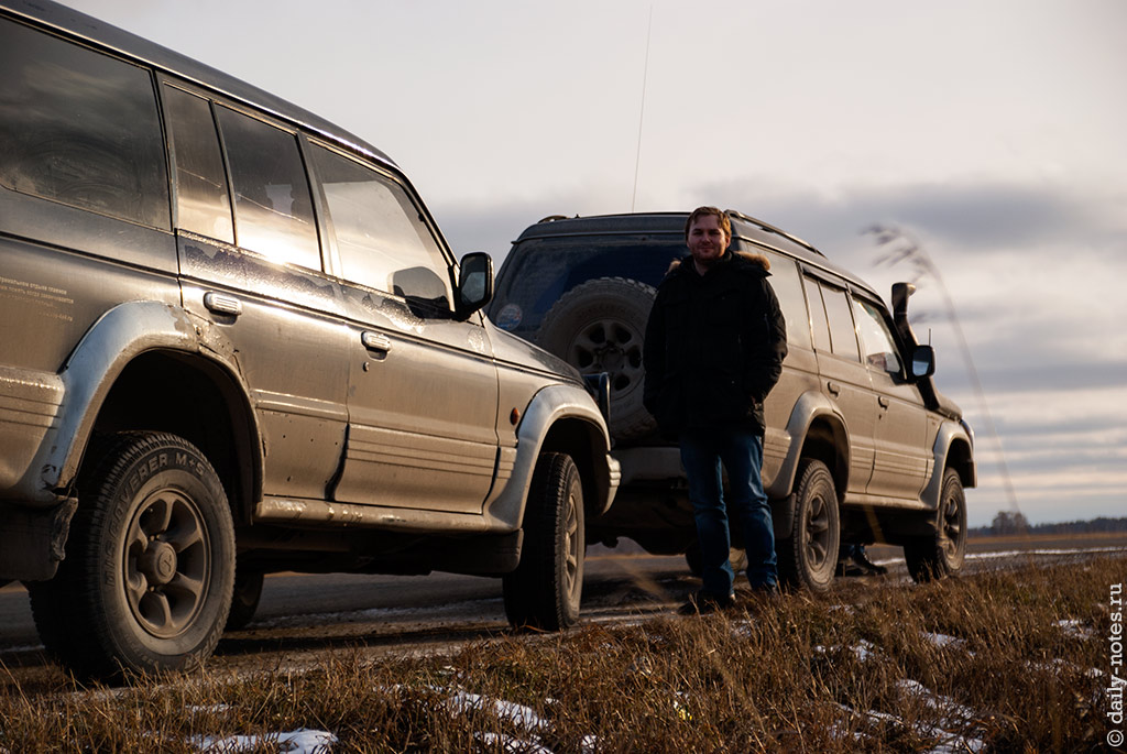 Обратно — до основной дороги — мы поехали «цивильной тропой», а потом веселыми просеками до второй машины. Жаль фоток нет, проезжали интересные места с уклоном 30-40 градусов, горками метров 30 в высоту. К концу поездки по лесу для меня это уже стало обычным делом. Заодно понял зачем по лесу развешивают бутылки на деревья. Бутылки — это знак, что ты едешь по дороге (актуально зимой, когда перед тобой сплошной сугроб).