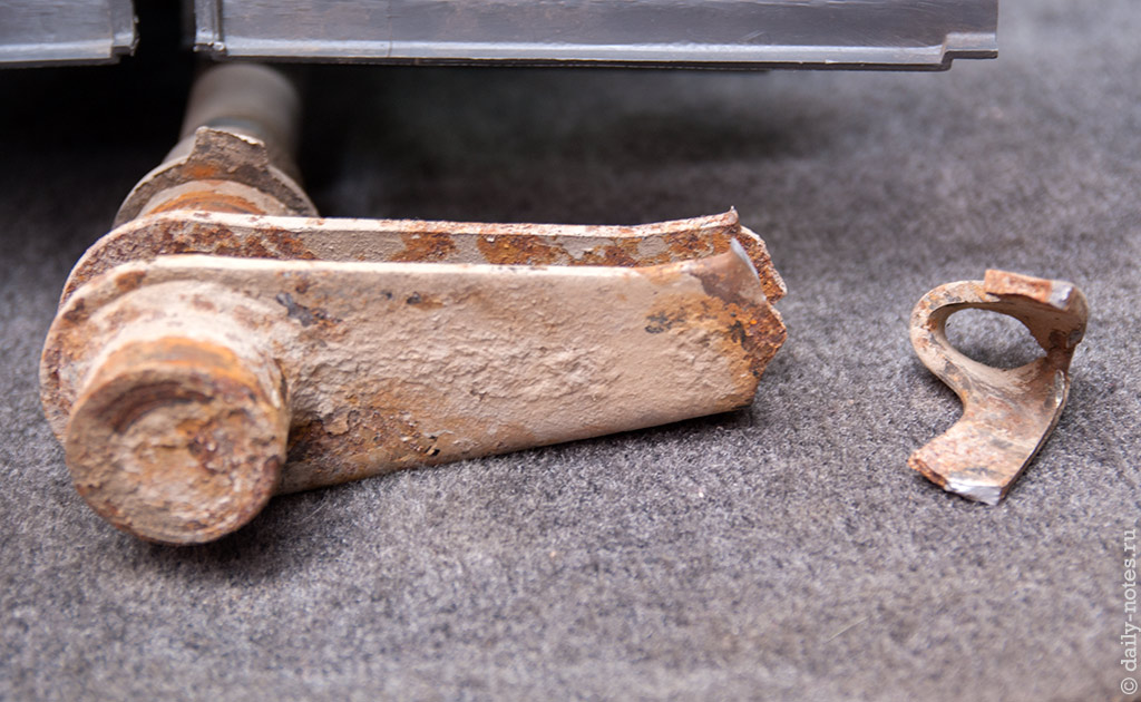 Лопнувший рычаг торсионаДальше едем уже на одной машине.