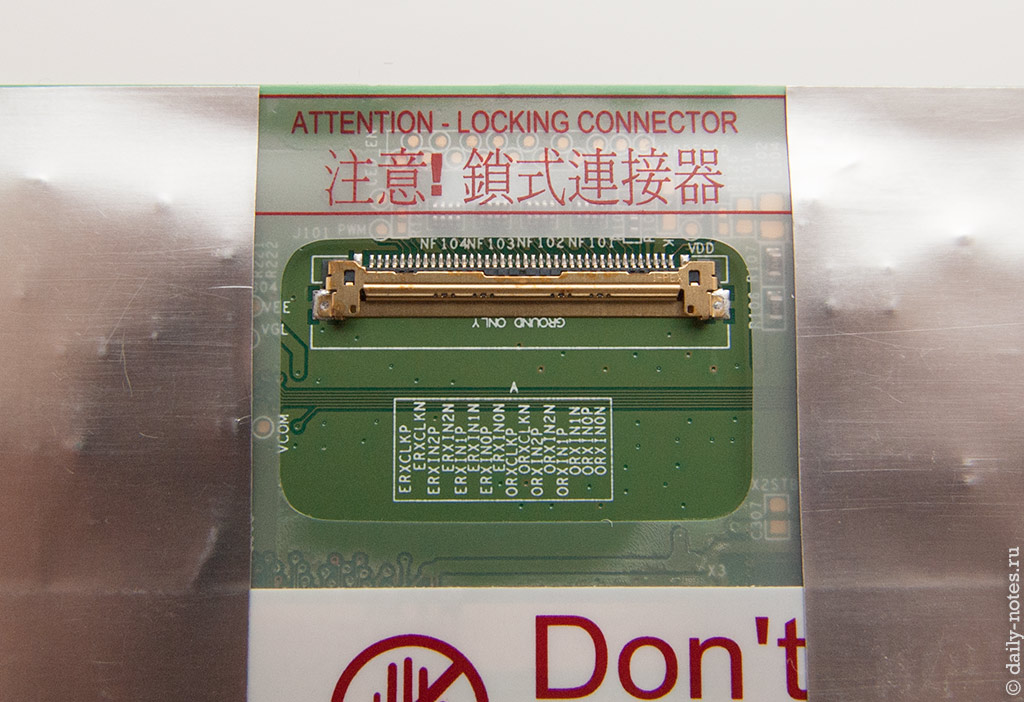К сожалению, мне не удалось найти кабель для данной модели ноутбука, поэтому я купил на eBay LVDS-кабель от ноутбука HP Probook 4740s (17″ ноутбук с разрешением матрицы 1600*900, PN: 50.4RY03.001), который обошелся мне в $5. Этот кабель немного длиннее, но к ноутбуку он подошел.