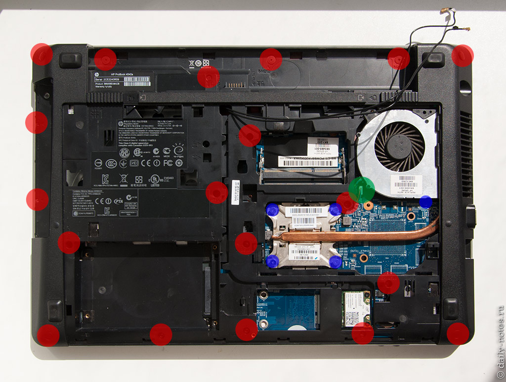Всем, кто ни разу не открывал свой Probook, рекомендую сначала прочитать запись про апгрейд 4540s, чтобы понять, как открывается крышка. Ниже предполагается, что крышку вы открывать умеете 😉