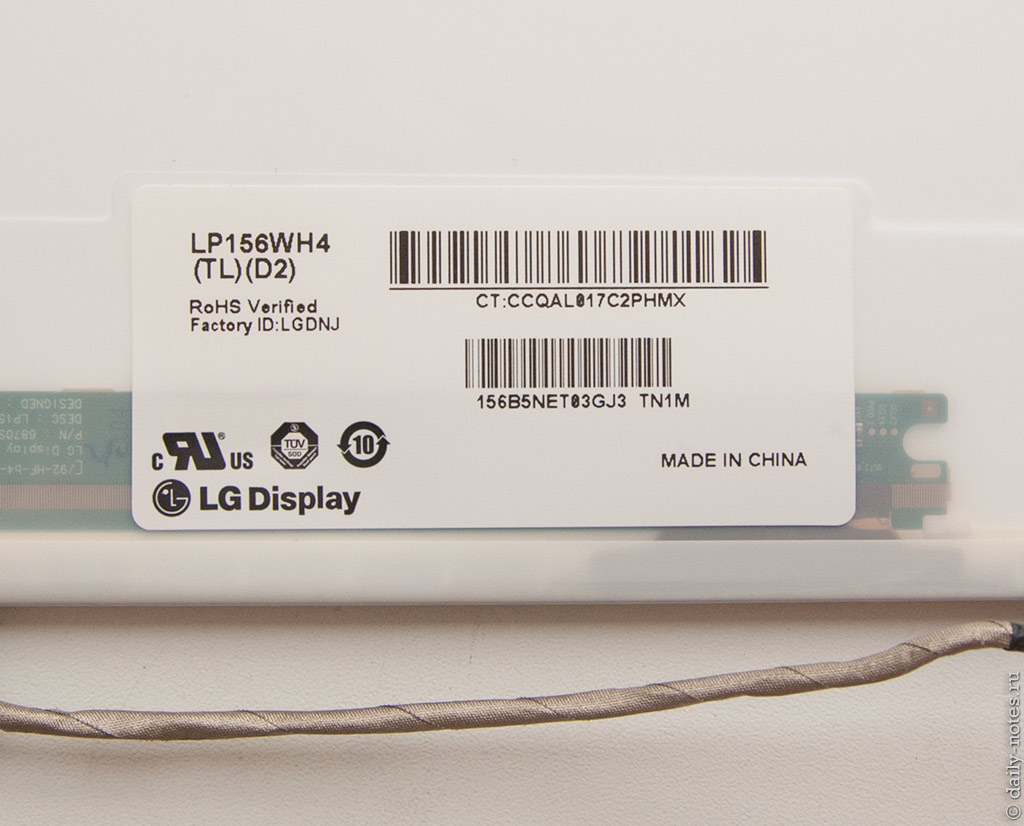 LP156WH4-TLD2 стикер на матрицеКак видно, старая матрица произведена компанией LG и имеет номер LP156WH4(TL)(D2)