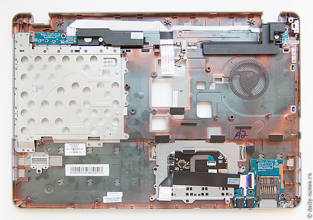 Верхняя часть корпуса hp 4540sС обратной стороны находится тачпад, кардридер и платка кнопки wifi.