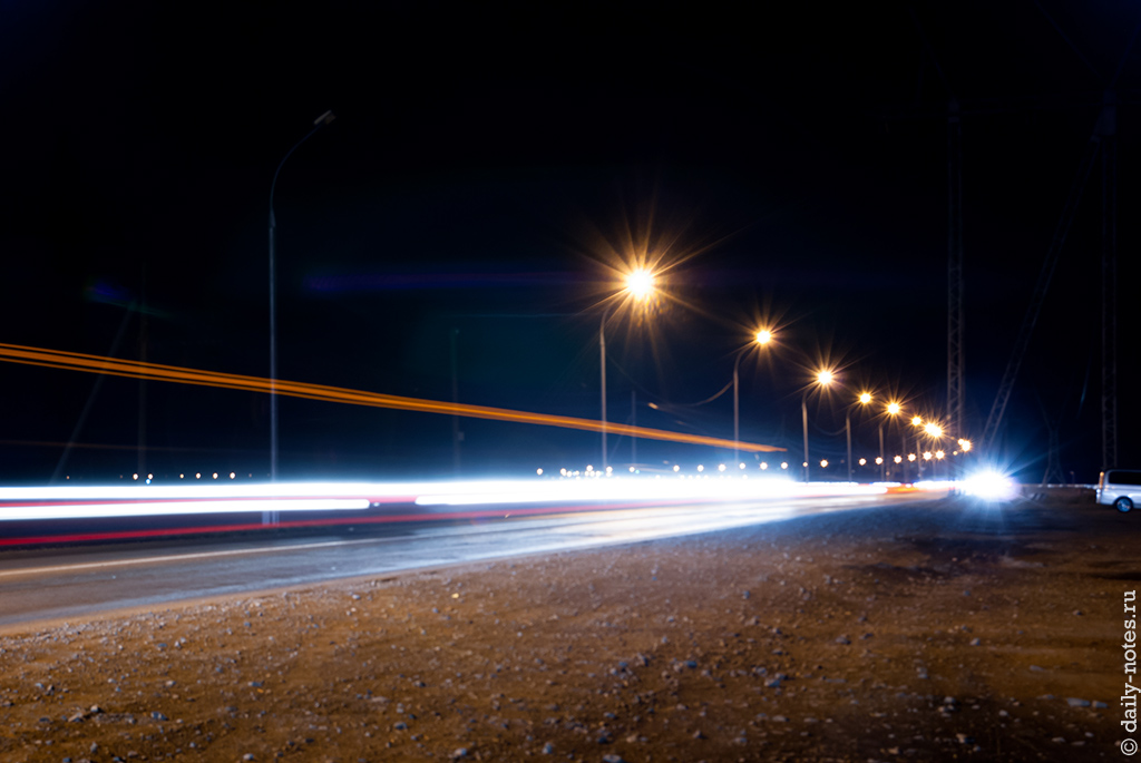 Здесь диафрагма закрыта до 7.1, выдержка 25 секунд. Машин будто и не было.
