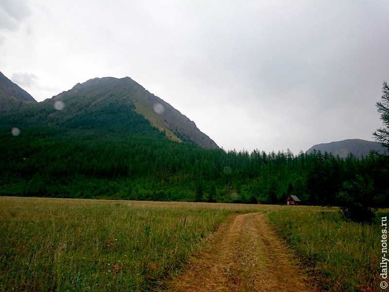 Наутро начал моросить дождик, поэтому нам пришлось быстро завтракать и выдвигаться обратно в сторону перевала, чтобы не застрять на размытой грунтовке.