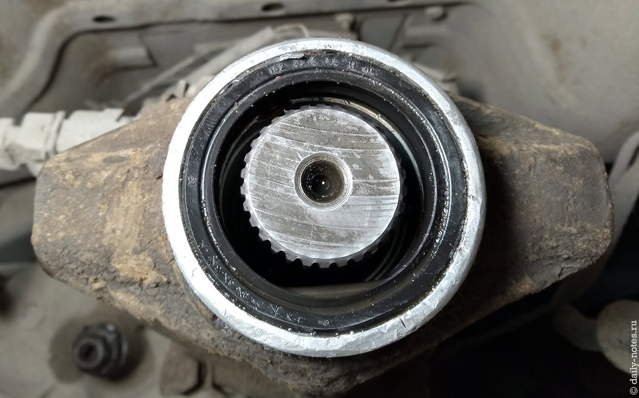 Далее все это чудо мы собрали обратно. Запрессовали заранее заказанные сальники в хвостовик, отскребли старый герметик с раздатки, обезжирили. При сборке использовали серый герметик DoneDeal для установки крышек ГБЦ. Болты я затянул на 35-40 нм (ключ китайский, т. ч. сколько по факту не знаю). Напялили новый колпачок, смазали вкладыш, установили кардан, залили в раздатку масло Liqui Moly 3979. Потом я залил еще 200 г в отверстие датчика скорости (важно! т.к. масло само туда наберется далеко не сразу) и закрутил датчик на свое место.